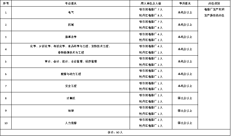 5.具有符合崗位要求的工作能力,熱愛煙草事業;