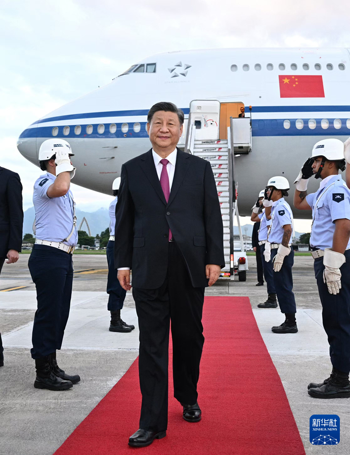 1月17日下午,國家主席習近平乘專機抵達里約熱內盧,應巴西聯邦共和國總統盧拉邀請,出席二十國集團領導人第十九次峰會并對巴西進行國事訪問。