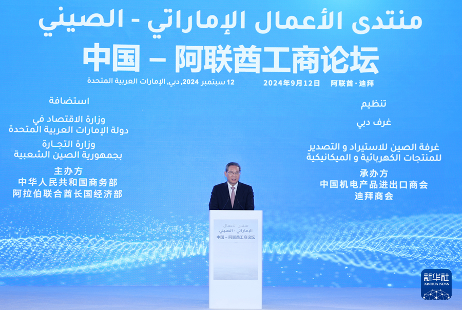 當地時間9月12日下午,國務院總理李強在迪拜出席中國-阿聯酋工商論壇并致辭。