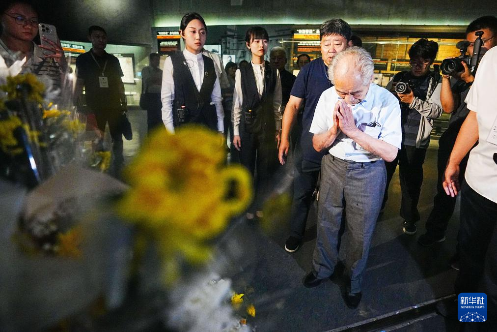 8月13日,清水英男在侵華日軍第七三一部隊罪證陳列館內的殉難者名單前祈禱。